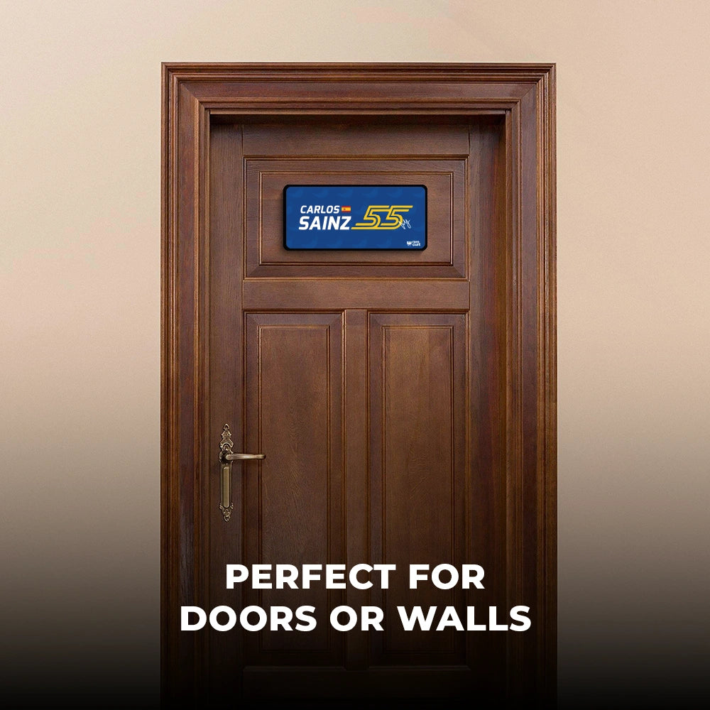 Carlos Sainz door sign India, Carlos Sainz wall decor India, Formula 1 gifts India, F1 wooden nameplate India, Carlos Sainz merchandise India, F1 fan gifts India, wooden racing signboard, F1 room decor for boys